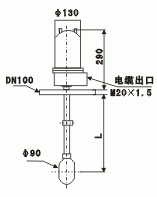 從容器頂部開口插入浮球,然后再固定密閉法蘭,浮球在容器內(nèi)隨液位的變化而上、下移動(dòng),當(dāng)液位上升或下降到液位控制點(diǎn)時(shí),浮球?qū)U頂部的鐵芯通過磁耦合帶動(dòng)了端子盒內(nèi)的開關(guān)機(jī)構(gòu),使微動(dòng)開關(guān)閉合或斷開,從而發(fā)出控制信號(hào)。